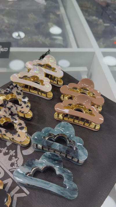Bulut formu ile dikkat çeken bu mandal saç tokası modeli, parlak yüzeyi ve modern mermer desenleriyle vitrin ve raflarda güçlü bir görsellik sunar. Dayanıklı plastik malzeme ve sağlam metal yay mekanizması sayesinde saçı güvenli şekilde kavrar ve uzun süreli kullanım sağlar.